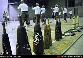 *كبـّاده: افزاری است آهنی، مانند كمان و سراسر تنه آن از آهن است و در میانش «جا دستی» دارد. درازای آن نزدیك به صد و بیست تا صد و سی سانتیمتر است. چله كبـّاده زنجیری است شانزده حلقه ای ـ و گاهی كمتر یا بیشتر ـ و در هر حلقه شش پولك آهنی دارد و میان آن جا دستی گذاشته شده است. وزن كباده از ده كیلو تا چهل كیلو است. گاهی نیز كبادههای سنگینتر و سبكتر هم می سازند و بكار میبرند